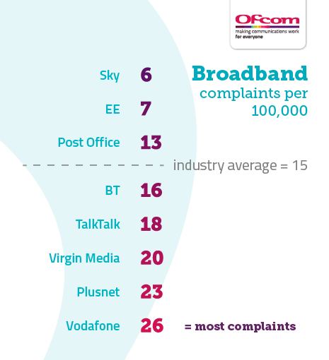 Vodafone was the most complained-about broadband provider. Half of all complaints about Vodafone were due to faults, service and provisioning issues. Sky attracted the fewest complaints among broadband providers.