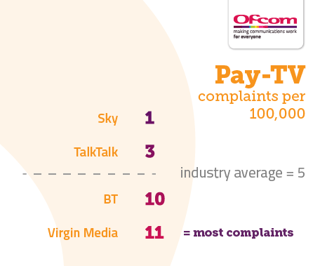 Virgin Media remained the most complained-about pay-TV provider, with handling of complaints being the primary reason people complained. Sky continued to attract the fewest complaints among pay-TV providers.