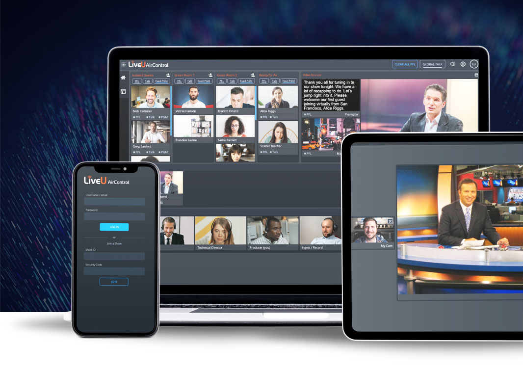 Air Control was designed from the ground up for the broadcast industry, providing a cost-effective solution to address production budgets, challenges, and overall needs. As part of LiveU’s cloud platform, Air Control removes the need for additional computers, servers, or hardware as well as the need to use consumer software in the broadcast workflow. Instead, teams can simply work with the devices, laptops, phones, and tablets they use daily, while benefiting from a professional service.