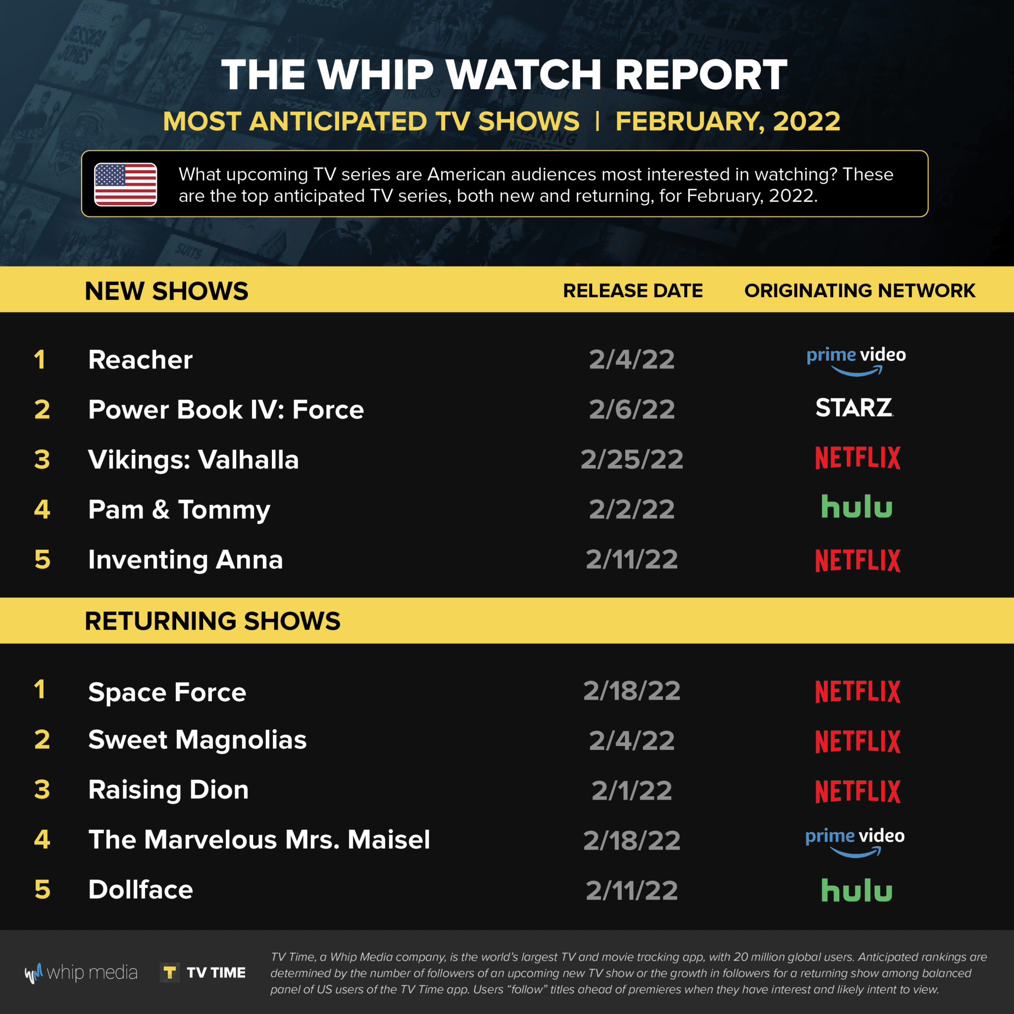 Whip Media, leveraging the viewing habits of TV Time app users, the world’s largest TV and movie tracking app, is helping shed some light on the shows fans can’t wait to see. The LA-based company’s February Anticipation Report breaks down the five most anticipated new and returning shows of the month in the US.