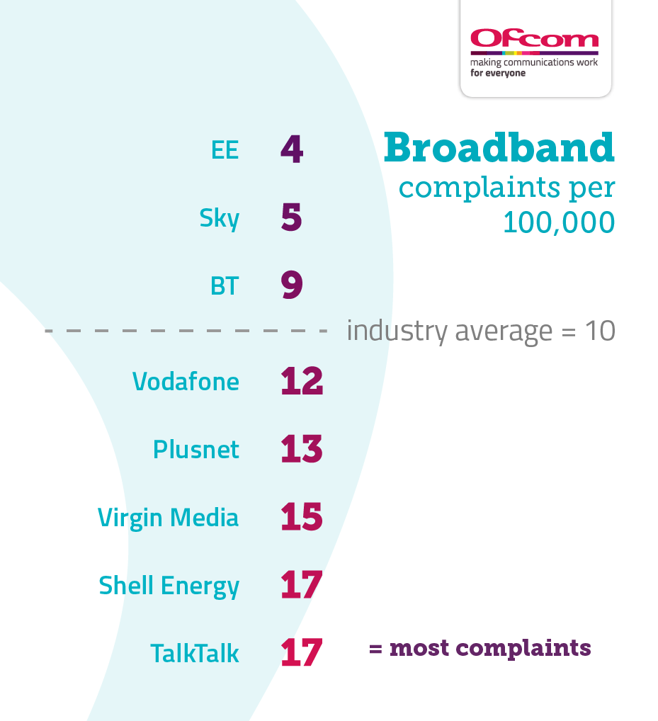 TalkTalk was also the most complained-about landline provider, while EE and Sky attracted the fewest broadband and landline complaints.