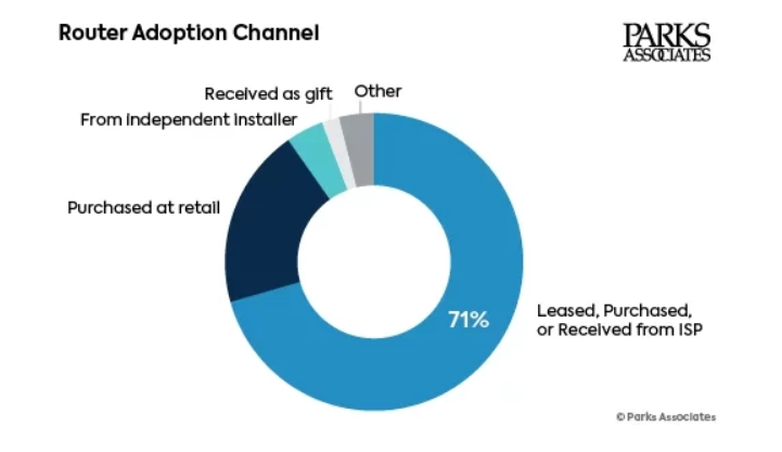 Parks Associates’ consumer research finds internet service providers (ISPs) are the dominant channel for home networking equipment, with 71 per cent of US consumers with home Internet reporting that they received their router/gateway from their ISP.