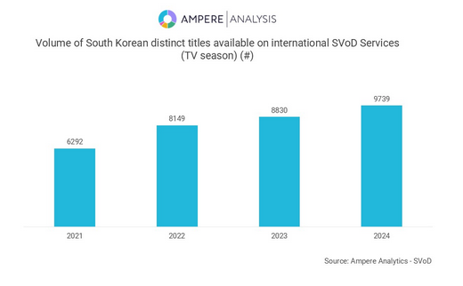 A report by Ampere Analysis reveals that while global audiences are watching more South Korean content than ever, both international streaming platforms and local commissioners are producing fewer new TV titles. Local companies have struggled with rising production costs and the broader macroeconomic challenges, while international SVoDs are shifting their content strategy towards acquisitions and Original Unscripted K-content.