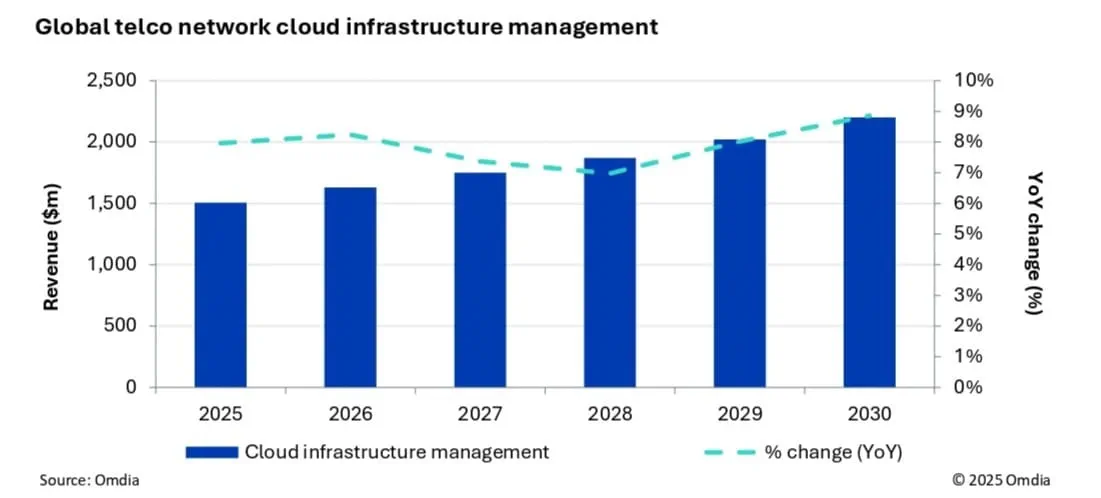 Global spending on telco network cloud infrastructure and software is projected to grow from $17.4 billion (€14.9bn) in 2025 to $24.8 billion by 2030, representing a compound annual growth rate (CAGR) of 7.3 per cent, according to Omdia’s Telco Network Cloud Market Tracker – 2025 Annual Forecast Report.