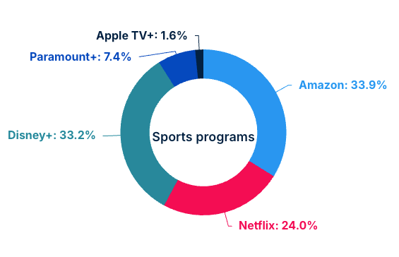 Disney+ grew its sports programming by 29 per cent since Q3 to account for 33.2 per cent of the five providers, just 0.7 per cent behind Prime Video