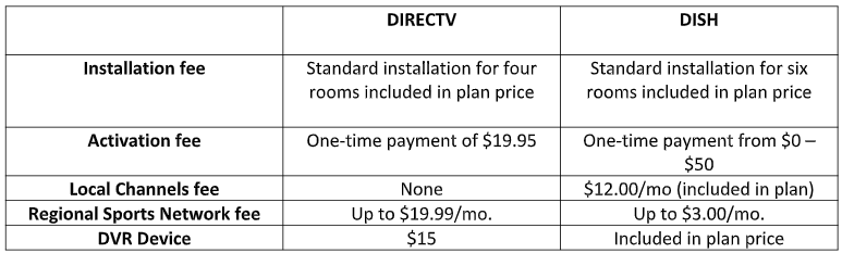 While DirecTV offers local channels for free, they do charge up to $20 for regional sports networks, whereas DISH charges only $3. DirecTV also charges an additional $15 for its DVR, whereas DISH throws that in for free.