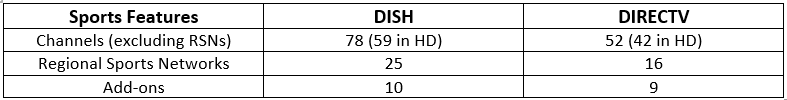 Considering how DISH has more affordable plans, multiple discounts, benefits such as free DVR, and a larger number of sports and entertainment channels across more of their plans, it seems the better choice.