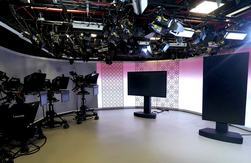 • Studio 1: A large-format studio with five cameras, BMD ATEM Vision Switcher, and Brio Audio Mixer, deal for live, high-production-value news.